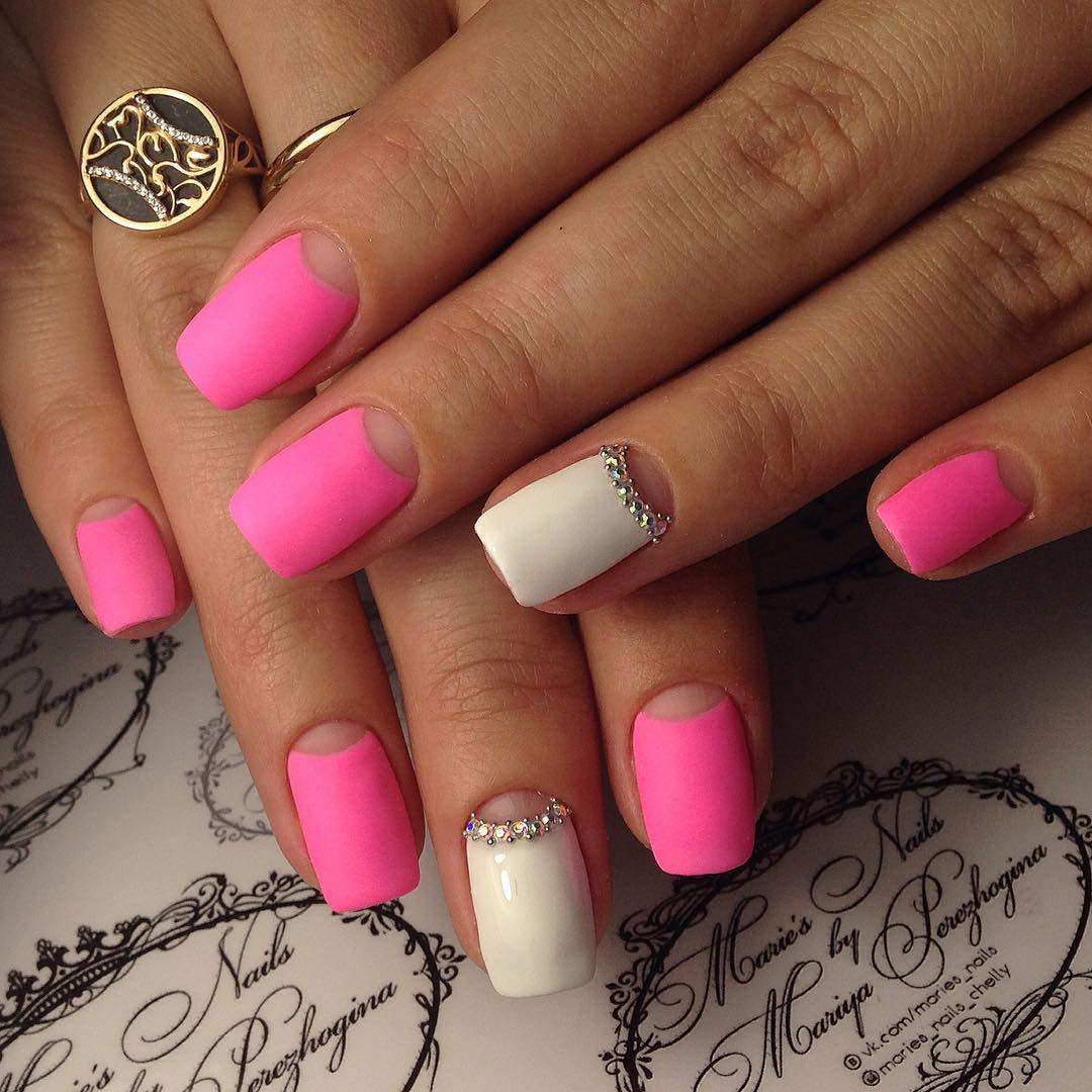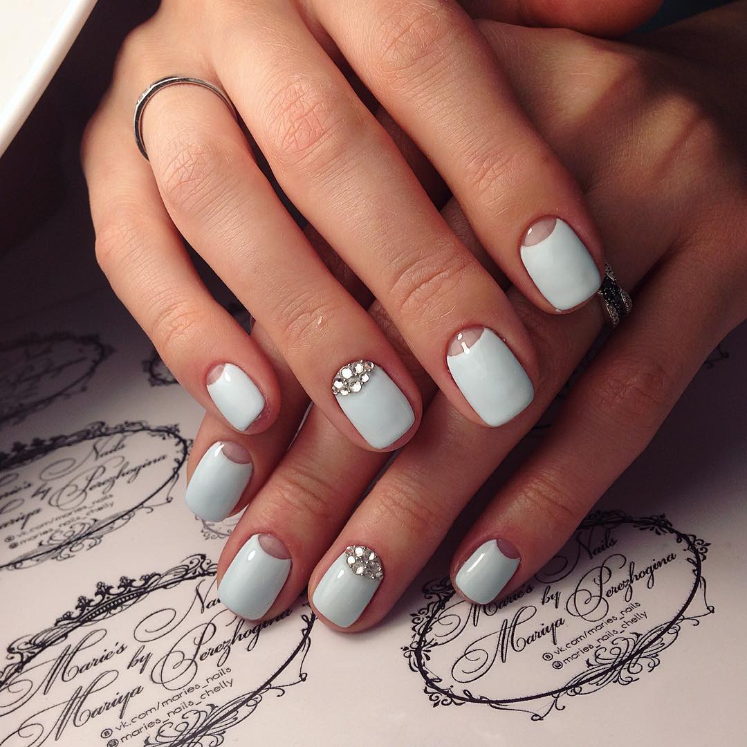 Для этого варианта подойдет такой дизайн, как вензеля, точечные узоры или стразы. Для любителей минимализма подойдет однотонное покрытие, которое можно завершить матовым топом.