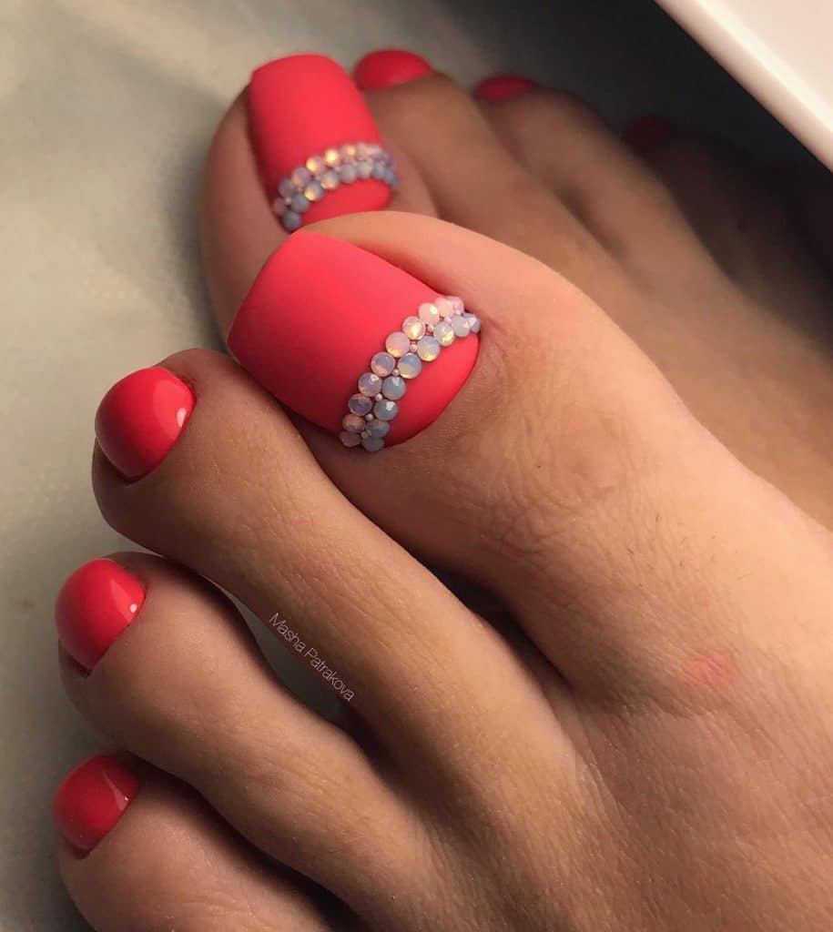 На сегодняшний день мастера по педикюру нашли множество разных способов сделать обычный скучный цвет — красивым и модным. Они делают профессиональную роспись, всячески играют со светом и оттенками цвета, вставляют объемные вставки в виде страз и других украшений.