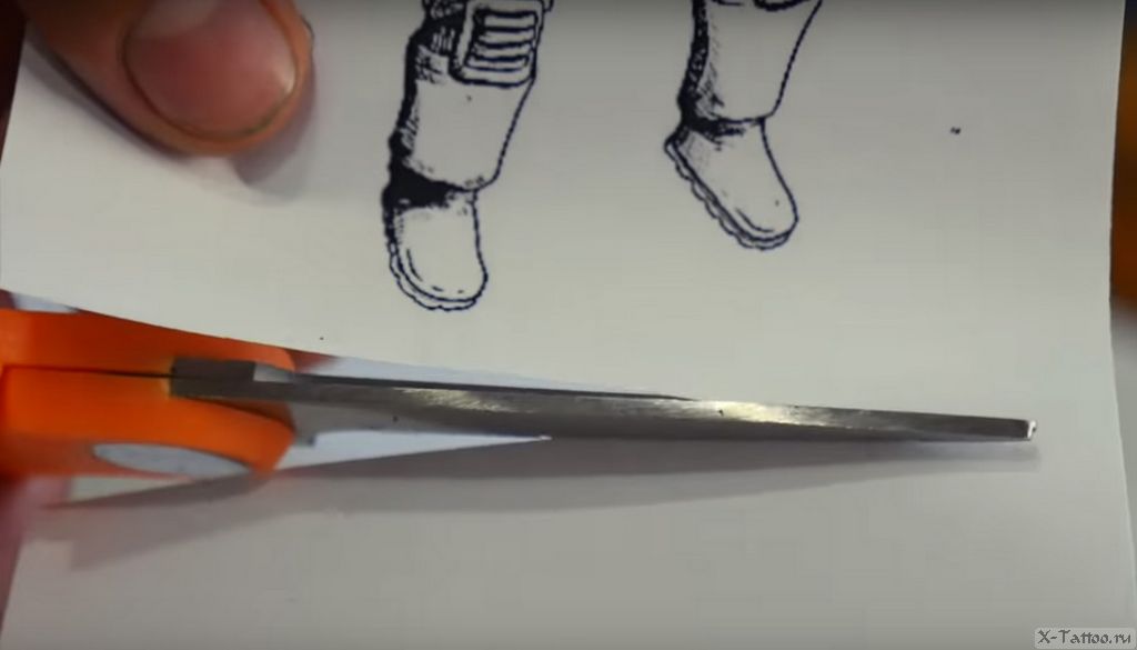 Ножницами обрезать тату максимально близко к контуру. Удалить белые участки.