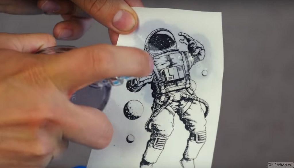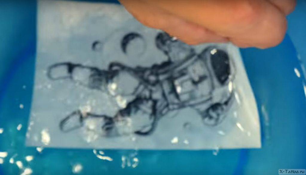 - После одной минуты бумагу необходимо достать из воды и приложить к коже рисунком вниз.
