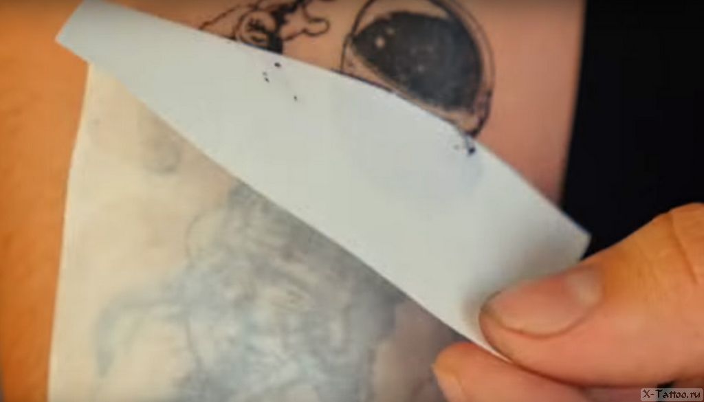 - Медленно снять бумагу. Рисунок уже должен перейти на кожу.