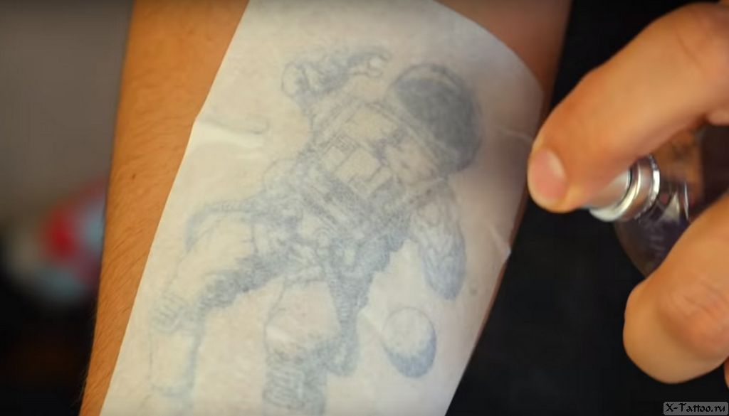 - Место, куда будет наноситься тату, тоже нужно побрызгать духами.