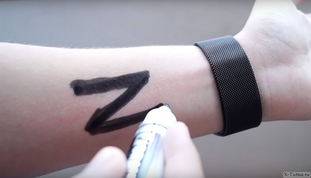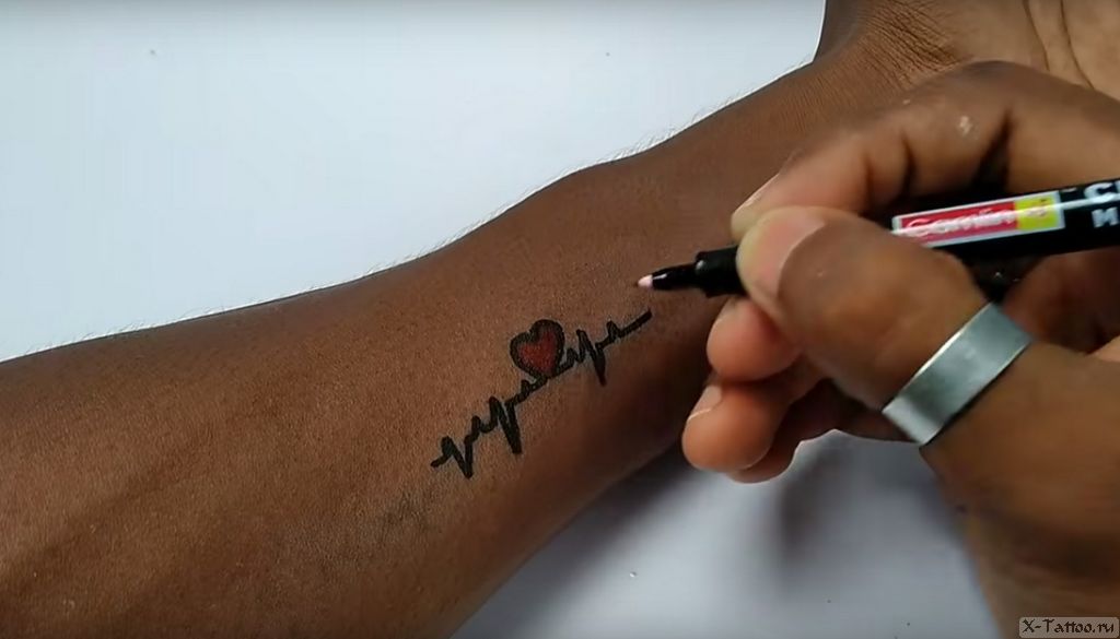 - Выберите место на теле и перерисуйте туда эскиз ручкой. О том, какие ручки подходят, а какие нет, мы расскажем чуть позже.