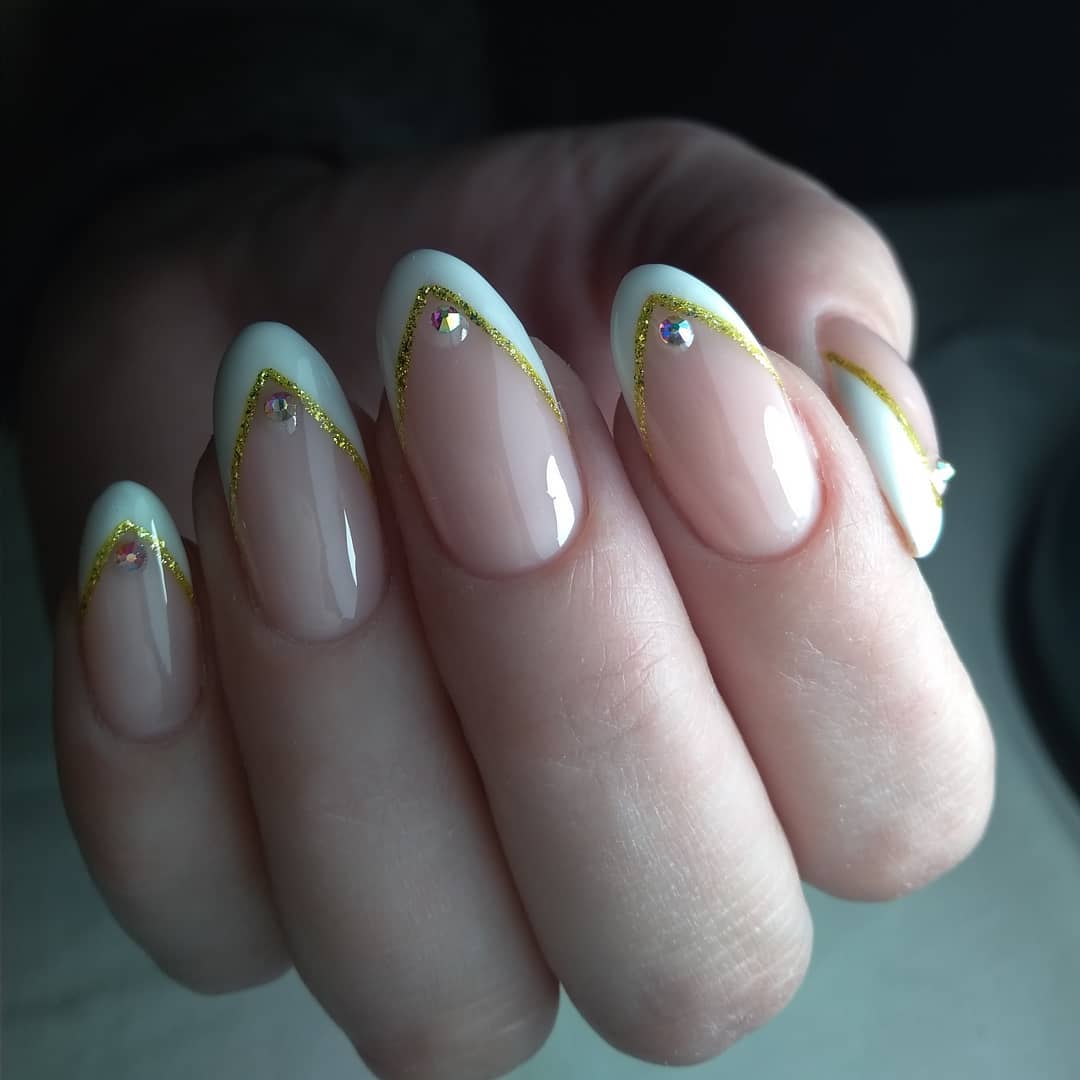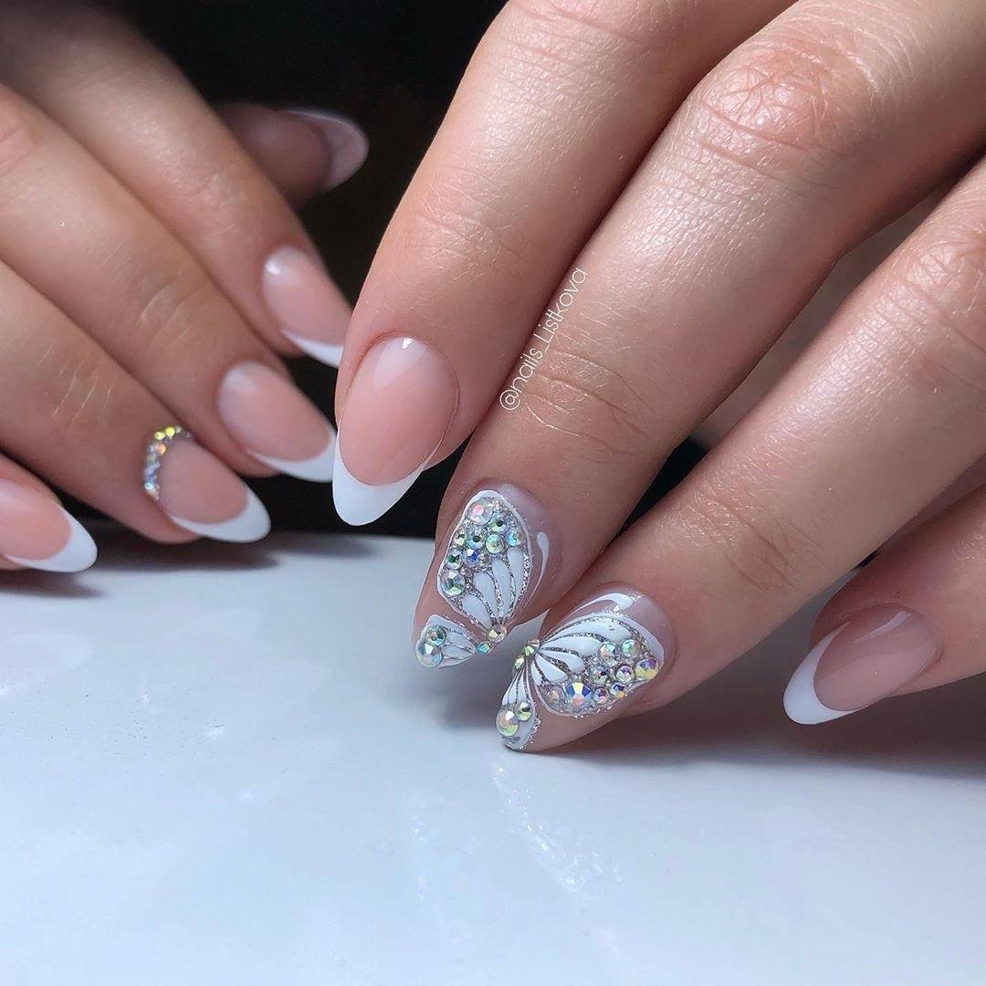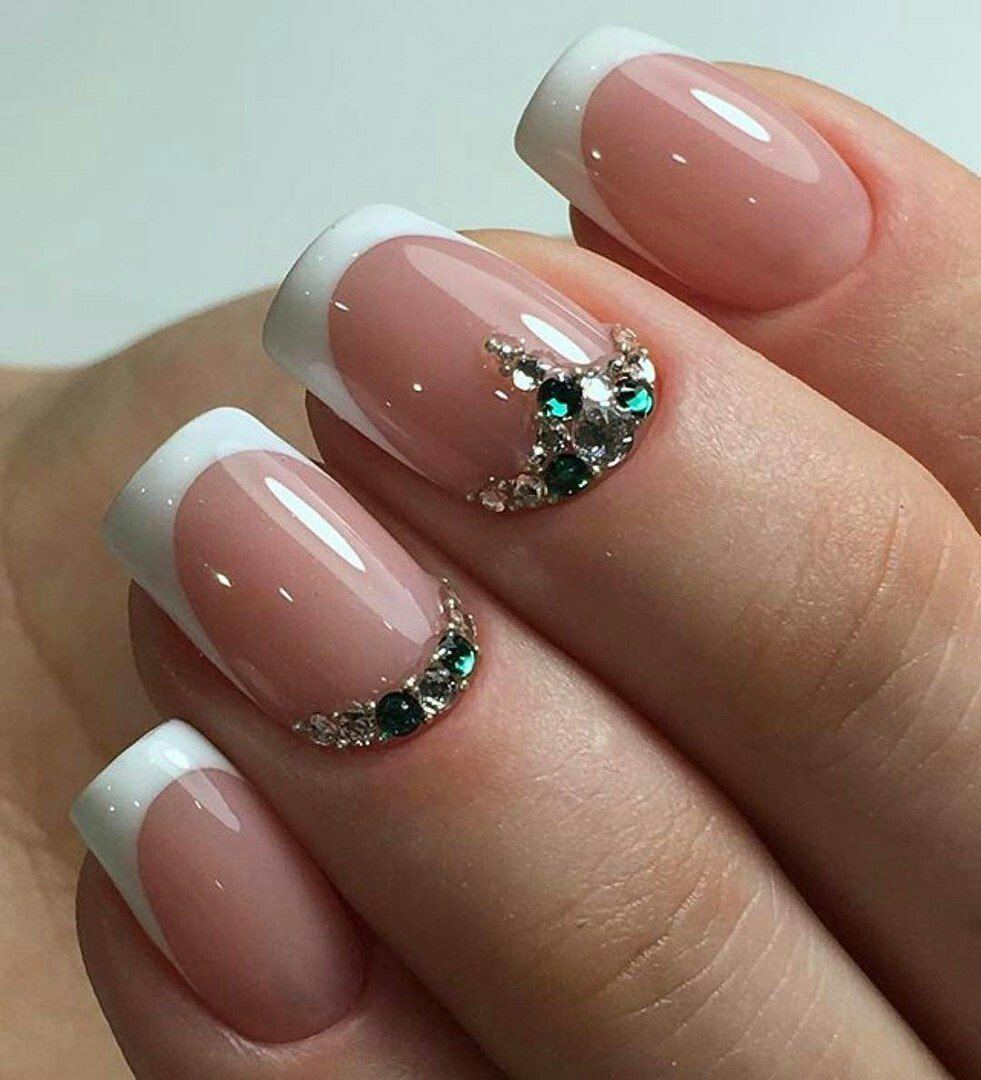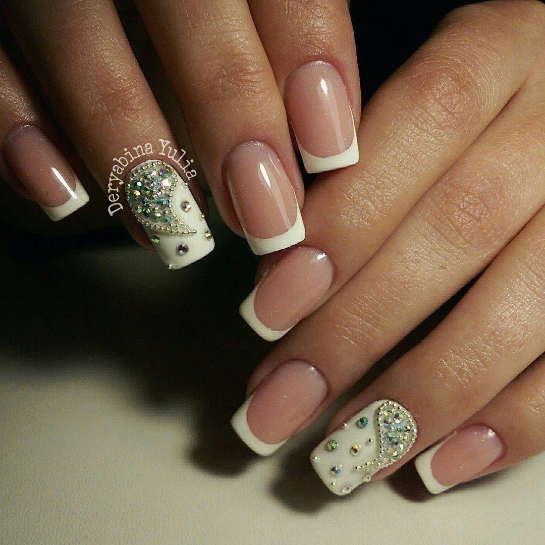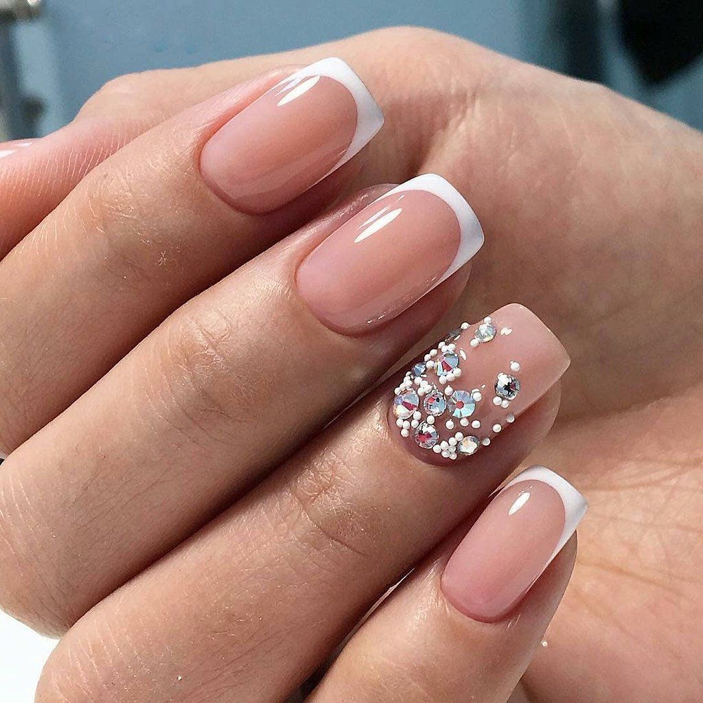 С белым френчем сочетаются все виды страз. На светлом белом фоне даже самые яркие стразы смотрятся восхитительно.