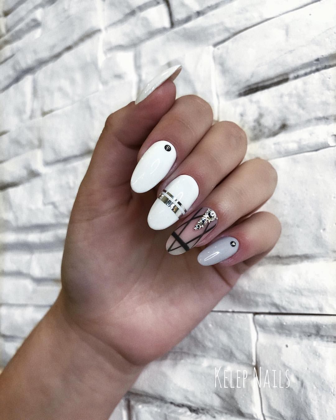 Если вы задумываетесь о создании белого маникюра со стразами, обратите внимание на рисунки на ногтях. Ведь белоснежный фон на ногтевой пластине похож на холст, на котором художник может воплотить свои фантазии и украсить их «драгоценными камнями»