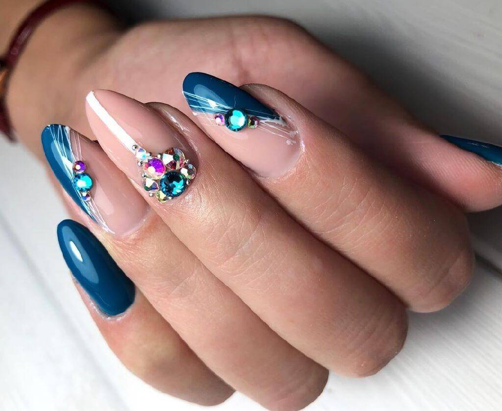 Маникюр со стразами на длинные ногти 2020: варианты выкладки стразов на ногтях