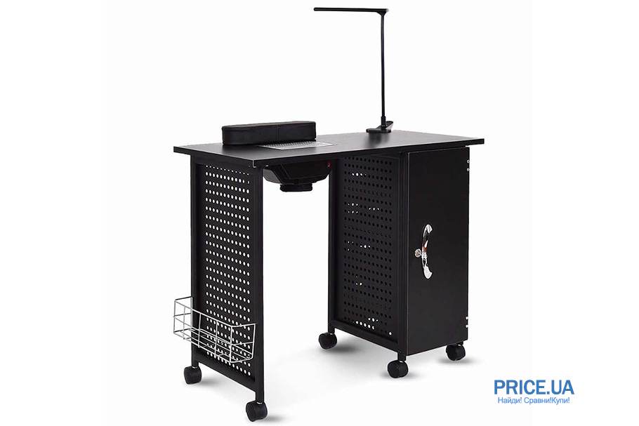 Компактные варианты – столики на колесиках и столы-трансформеры – редко обременены тумбами и вытяжкой. Минимально «тюнингованные» модели придется доукомплектовать. Вытяжка для маникюрного стола
