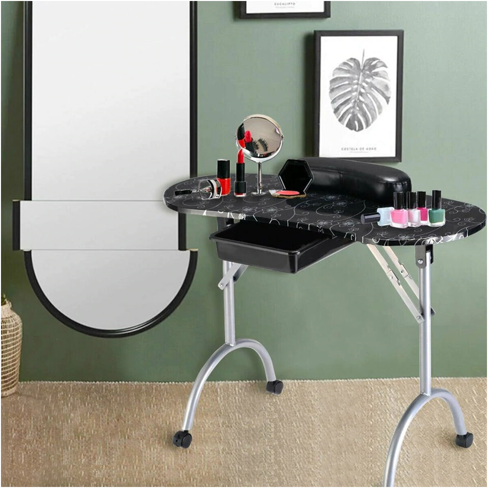 Как организовать рабочее пространство без стола? Да никак! Столы для маникюра могут быть обычными или обладать дополнительными опциями в виде полок, открытых витрин для материалов, а также со складной поверхностью стола, созданной для удобства.