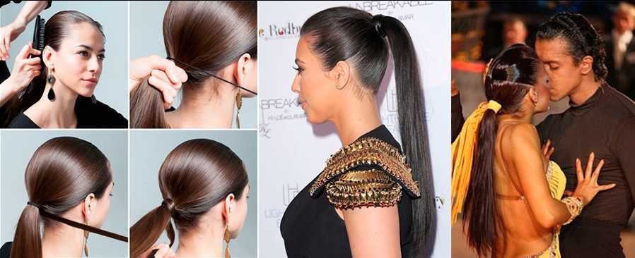 Гладкая прическа волосы назад отлично дополняется конским хвостом, особенно если у вас длинные волосы. Продолжение хвоста может быть таким же гладким или наоборот, начесанным и пушистым, то есть наполовину небрежный хвост. (по этой же ссылке вы узнаете, как красиво начесать волосы в хвосте и спрятать резинку за прядью волос).