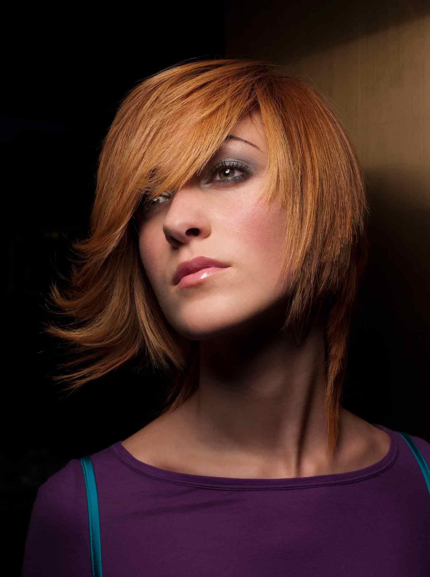 Если процесс выполнения стрижки осуществлялся по строгому соблюдению технологии, то пробор может быть расположен в любом месте. Дополнить укладку можно косой челкой.