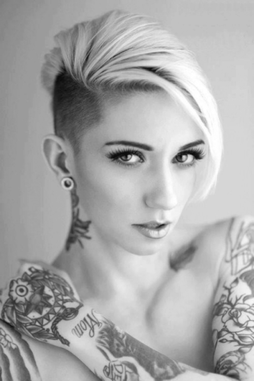 Это объясняется тем, что на даму с таким выбриванием обратят внимание в любой компании. Прическа заключается в том, что парикмахеры выбривают часть волос на одном или обоих висках, а иногда и на затылке