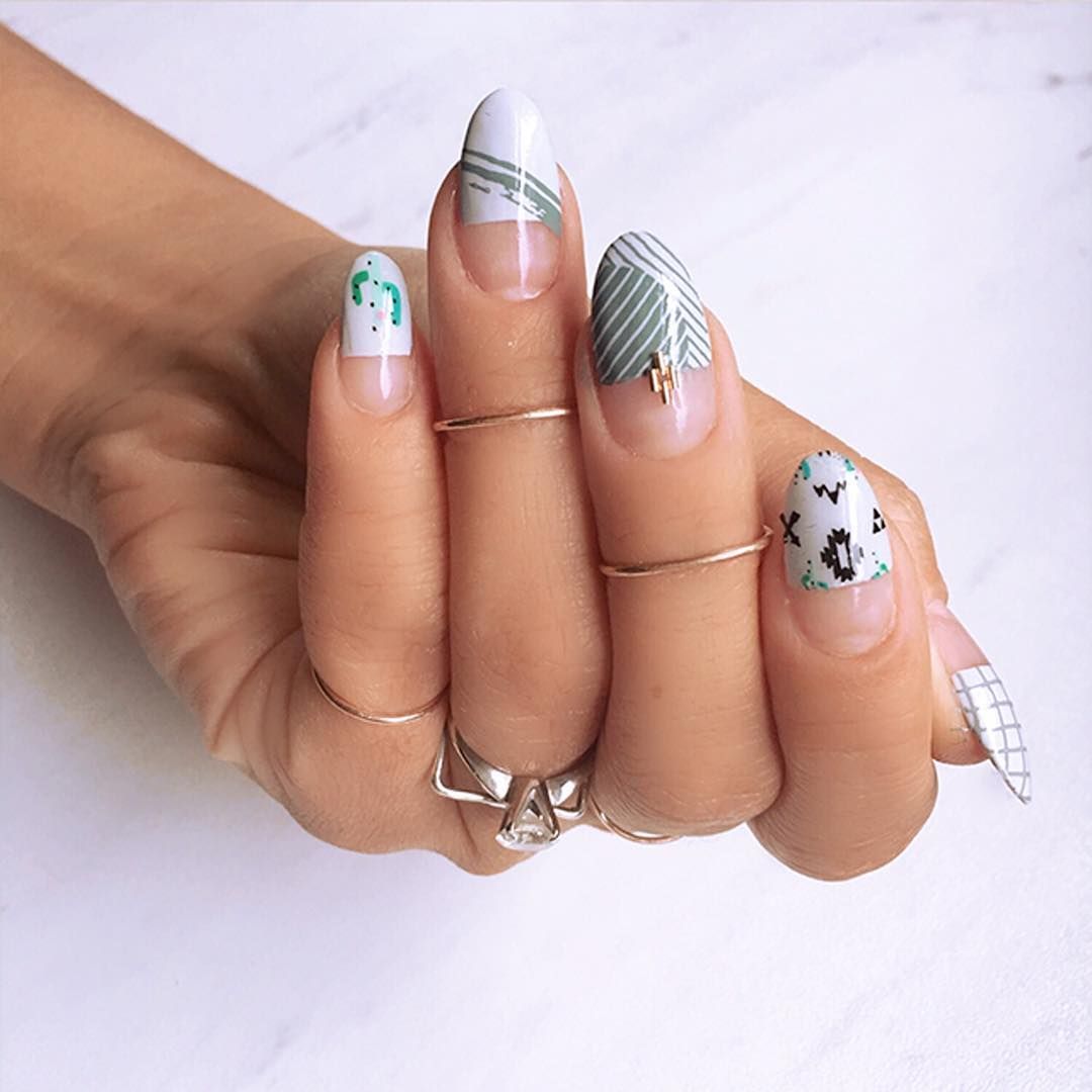 Миндалевидный маникюр и френч с геометрическим рисунком