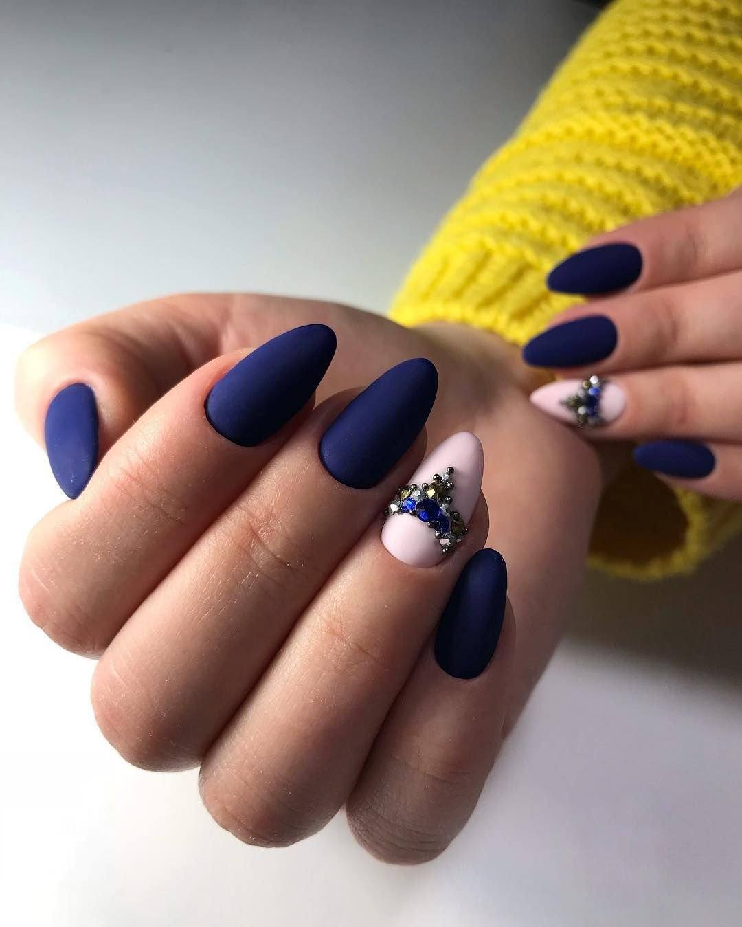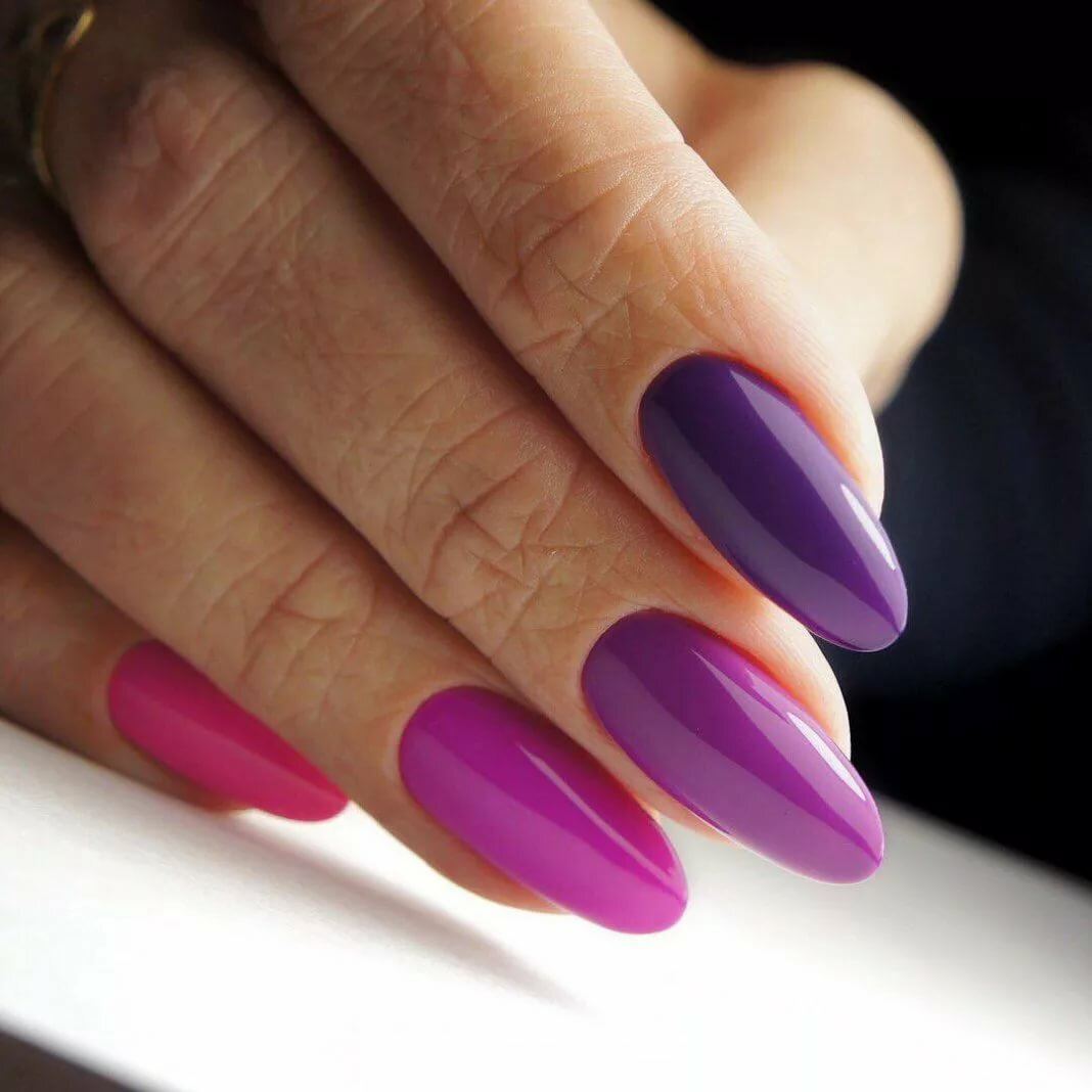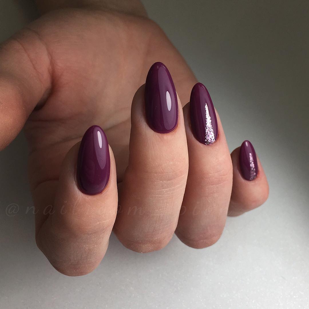 В 2020 году рекомендуем обратить внимание на темную палитру, а именно на изумрудный, синий, черный, бордовый, фиолетовый и коричневый цвет. Каждый из них выглядит невероятно красиво на миндалевидных ногтях