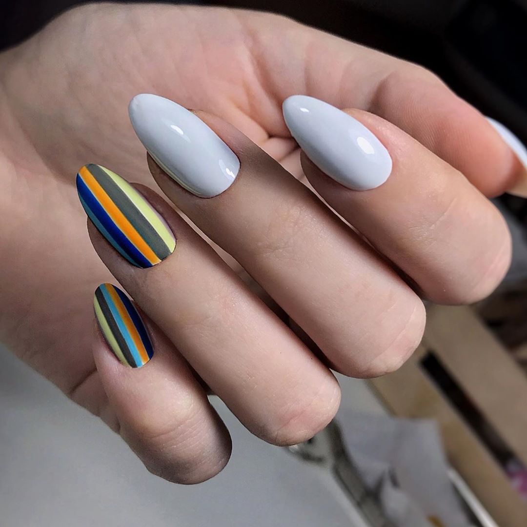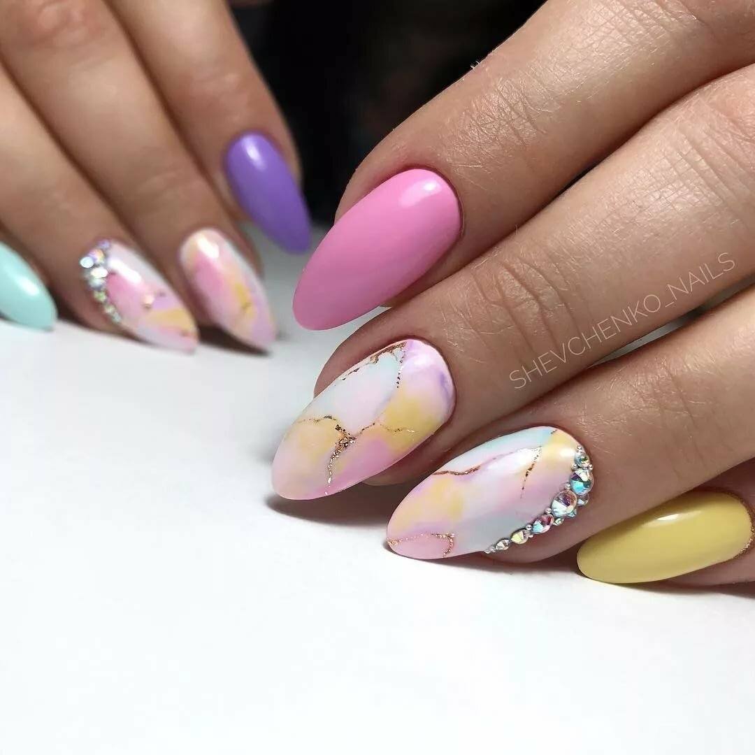 Для этого сезона подходят яркие и пастельные оттенки для миндальной формы: