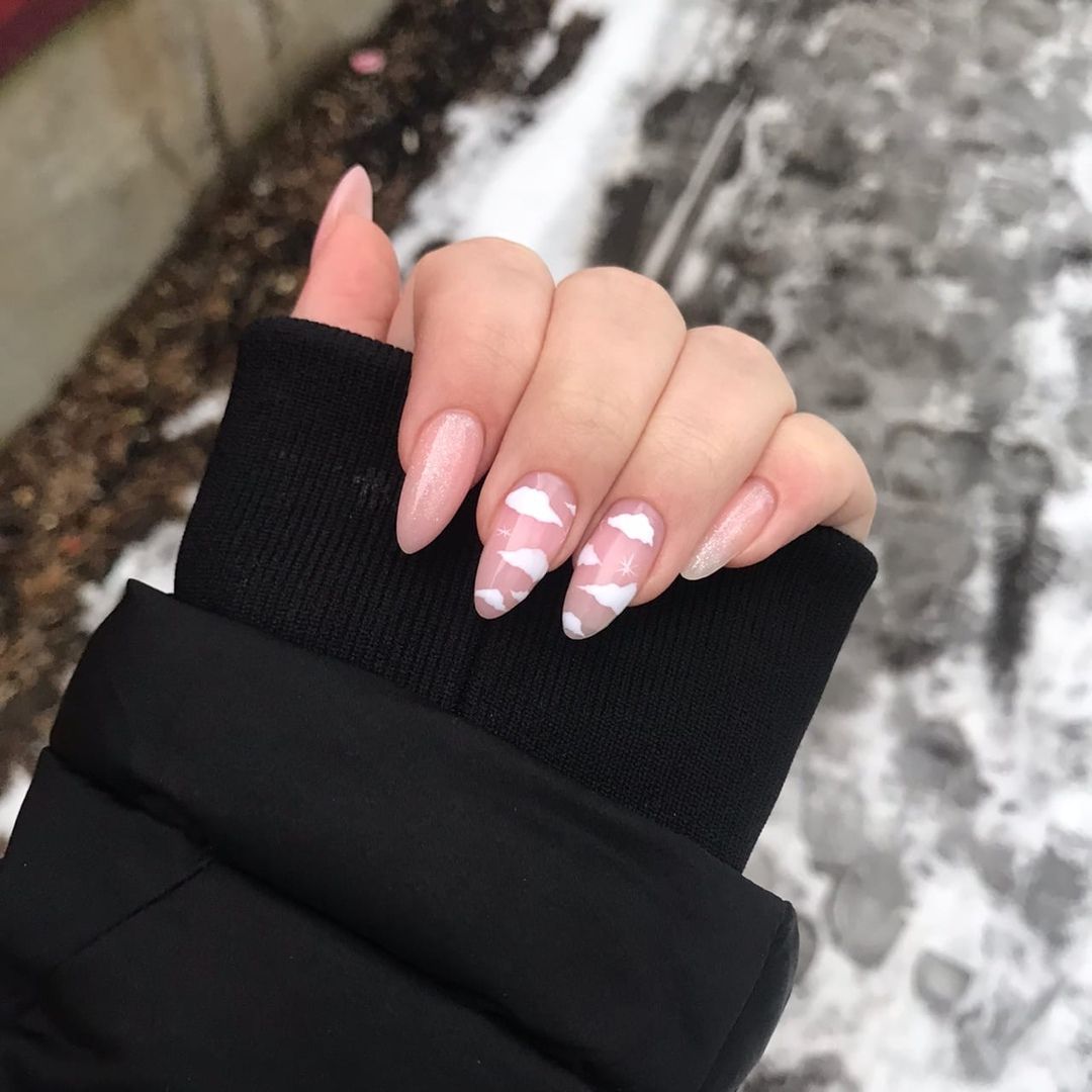 Миндалевидные ногти открывают простор для творчества нейл-мастеру. На них можно воплотить самые смелые идеи. Если мастер умеет красиво рисовать, на миндалевидных ноготках могут появиться целые зимние картины.