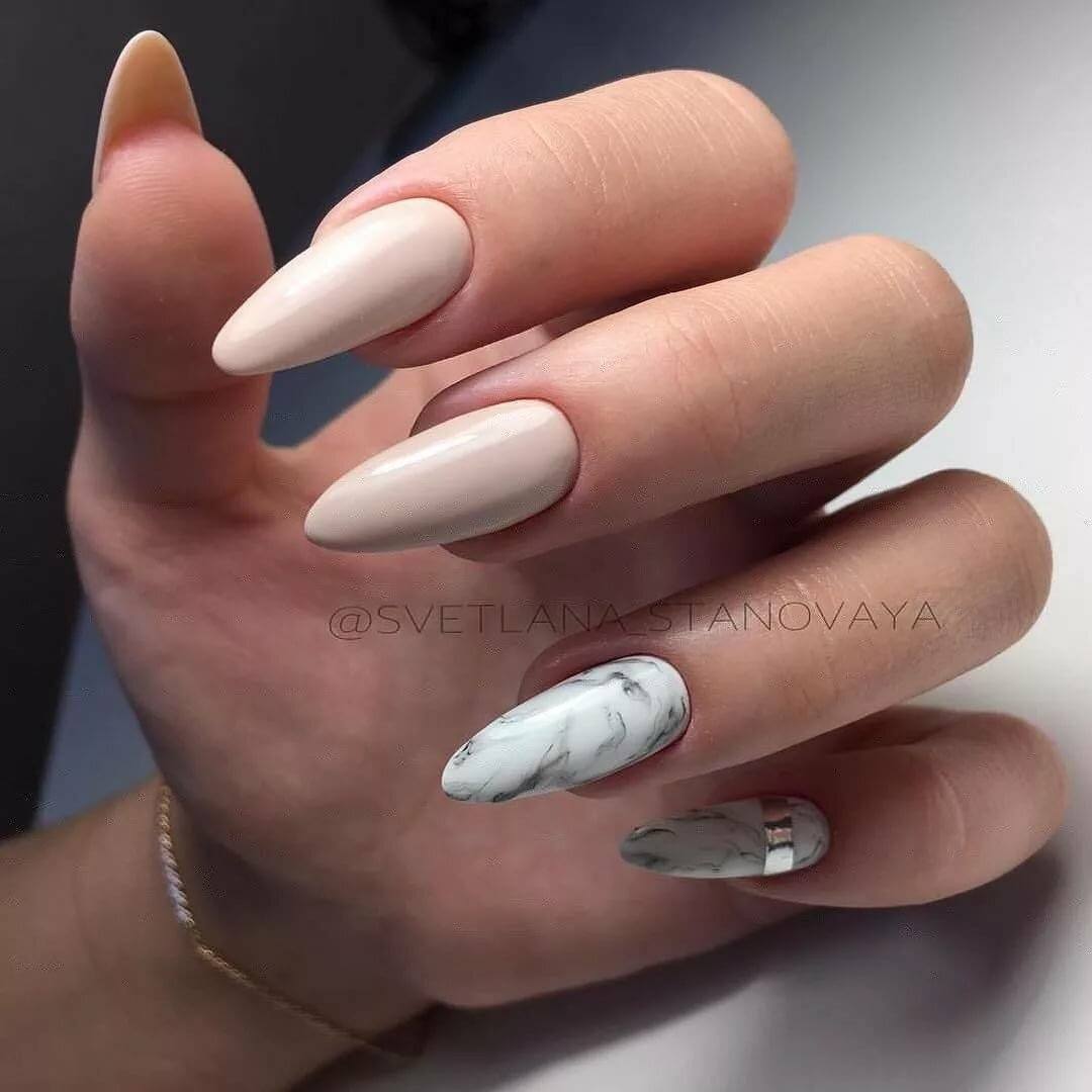 #7 Мраморный маникюр на миндальные ногти 2020