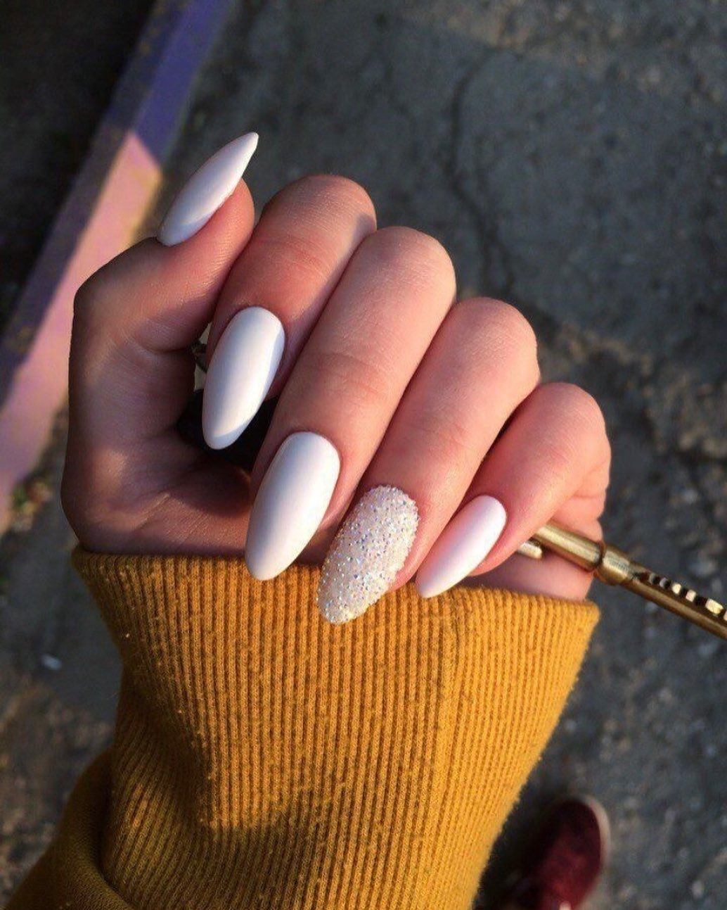 К миндалевидным ногтям подходит любой оттенок. Главное – это качественно обработать ногти и выбрать соответствующий общему модному луку вариант дизайна.
