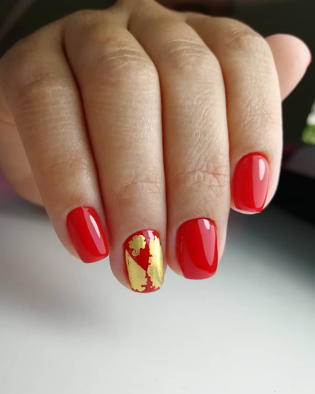 красный – самодостаточный и динамичный оттенок, который отлично смотрится на коротких ногтях