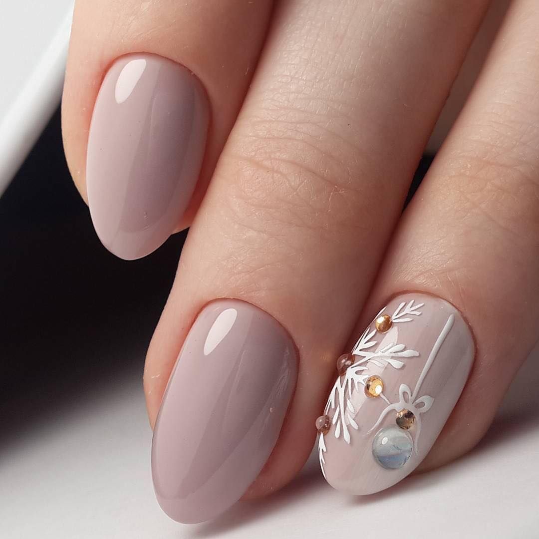 Маникюр в нежных не кричащих оттенках создают как для новогодней ночи, так и дальнейшего ношения после окончания празднеств. Особо неброский маникюр актуален для покрытия гель-лаком, когда дизайн держится на ноготках не один день.