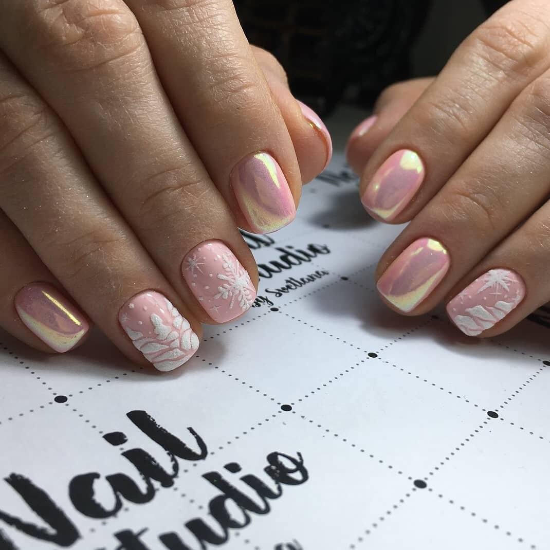 Белые и подобные светлые оттенки в новогоднем маникюре