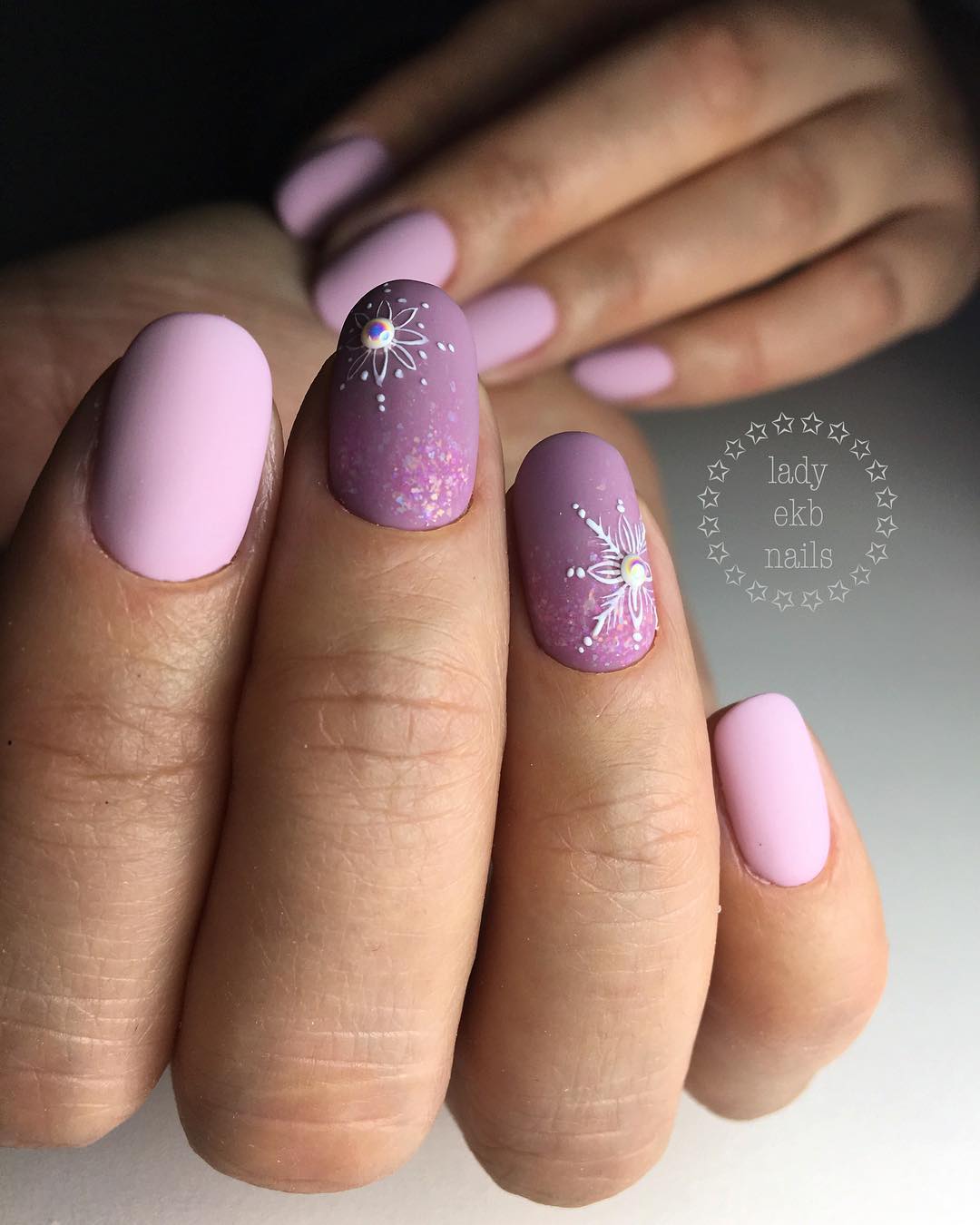 В этом праздничном Новогоднем сезоне, минималистичный дизайн прекрасно впишется в любого цвета Новогодний наряд. Очень стильно и легко будут смотреться пастельные цвета с небольшими акцентами в виде рисунка снежинки, нескольких аккуратных страз или каплей блесток.