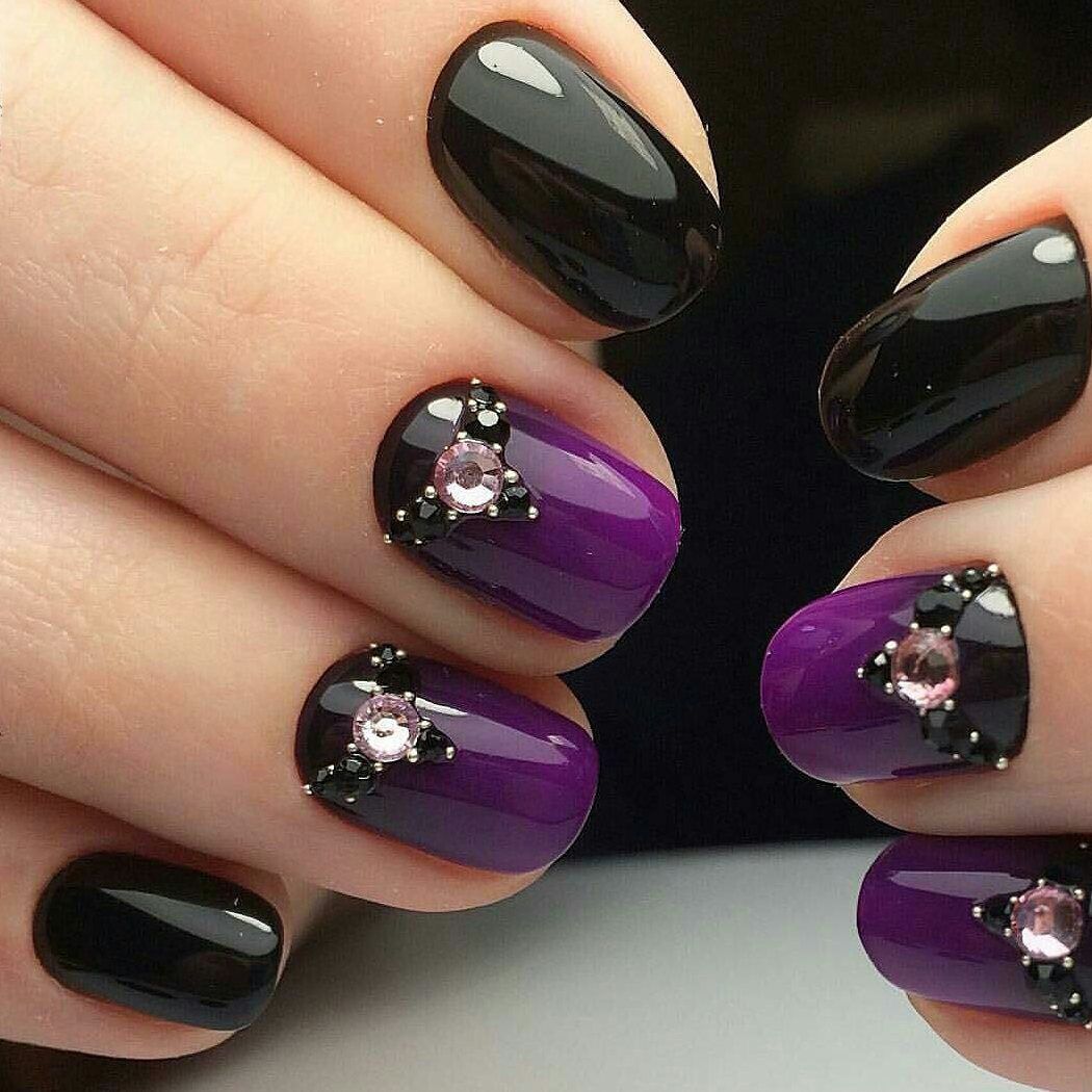 Эти цвета самые новогодние из всех, которые можно представить для маникюра: красный может символизировать цвет шубы Деда Мороза (или Санта Клауса), а фиолетовый – зимнее ночное небо. Но эти цвета одинаково хорошо сочетаются с белым лаком, серебристыми и золотистыми оттенками, красиво смотрятся в матовом выполнении.