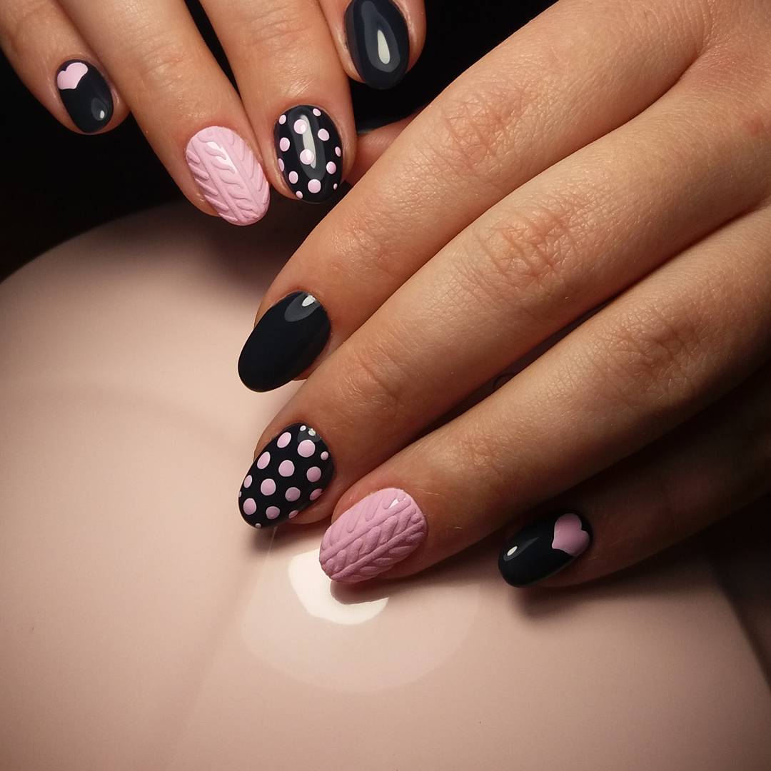 Черный лак для ногтей вписывается в любой сезон ней-арта. В новогодний черный маникюр просто добавьте праздничные элементы: звезды, снежинки, новогодние игрушки, узоры, которые часто можно увидеть на свитерах, выбирайте все, что вам нравится.