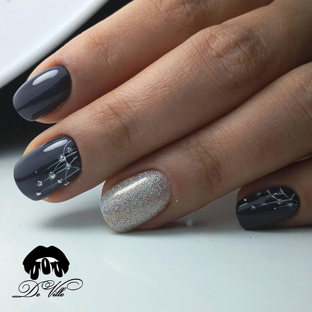 - покрытие 1-2 ногтей серебряным или золотым глиттером
