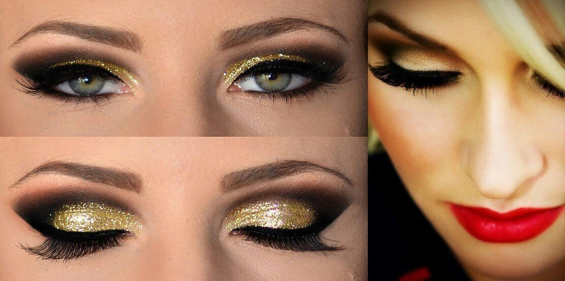 Макияж с золотыми блестками. Особенности макияжа с блестками